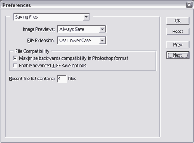 Вкладка Saving Files настроек Photoshop 6.01:
