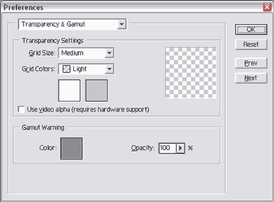 Вкладка Transparency&Gamut настроек Photoshop 6.01: