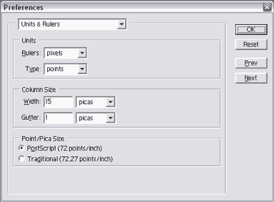 Вкладка Units&Rulers настроек Photoshop 6.01: