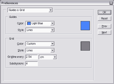 Вкладка Guides&Grids настроек Photoshop 6.01: